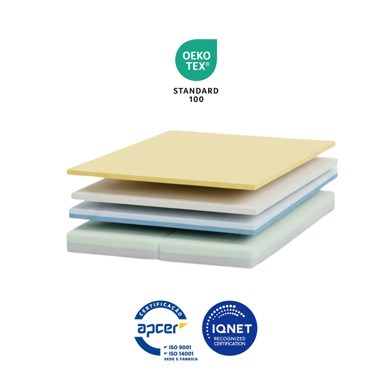 100% espuma de alta densidade, criada para suportar o teu corpo sem qualquer estruturas rígida e com um conforto que só espuma pode dar.