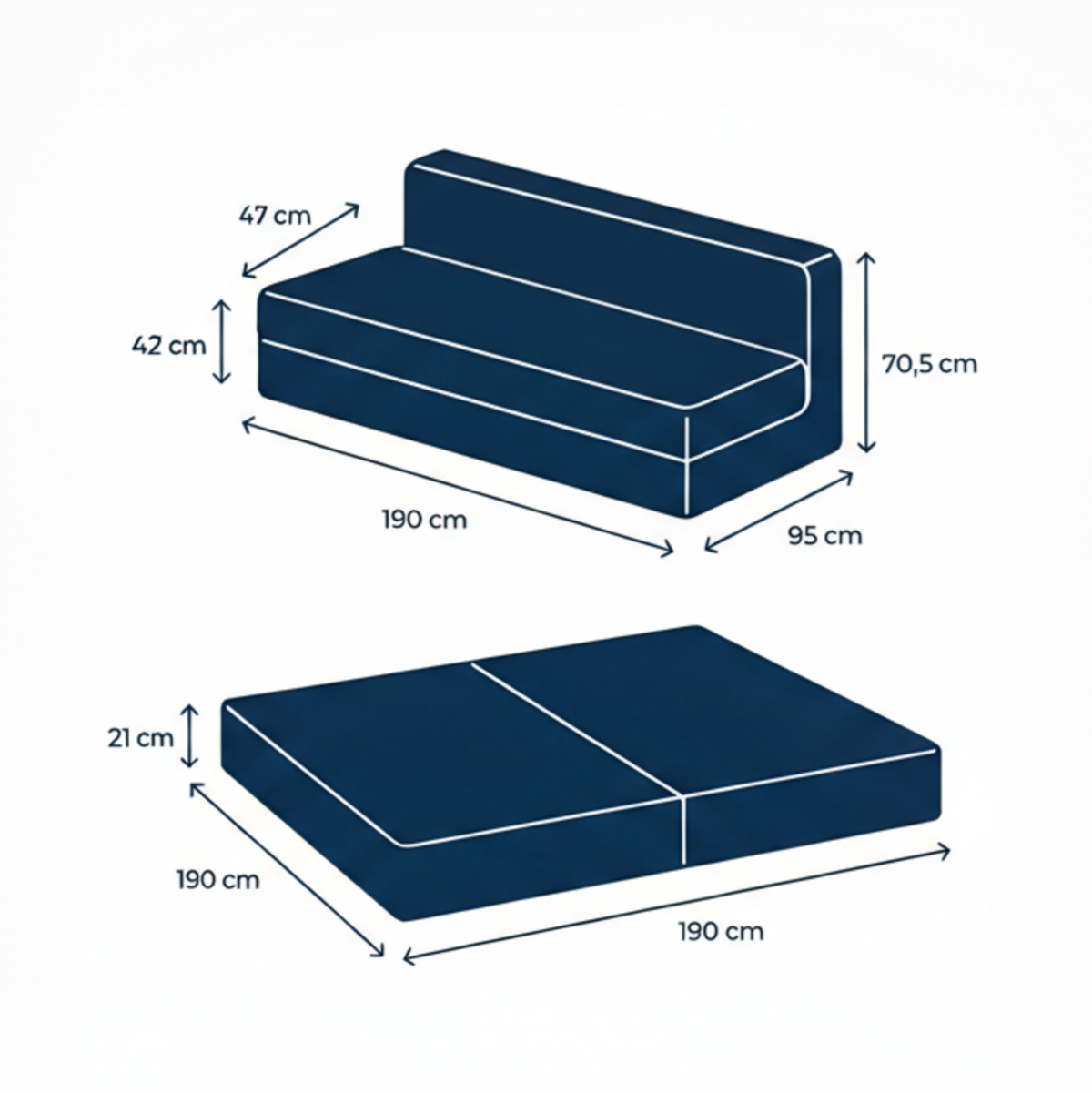 Em poucos segundos, transforma-se num sofá-cama espaçoso, perfeito para noites de cinema, visitas inesperadas ou simplesmente para relaxar com estilo