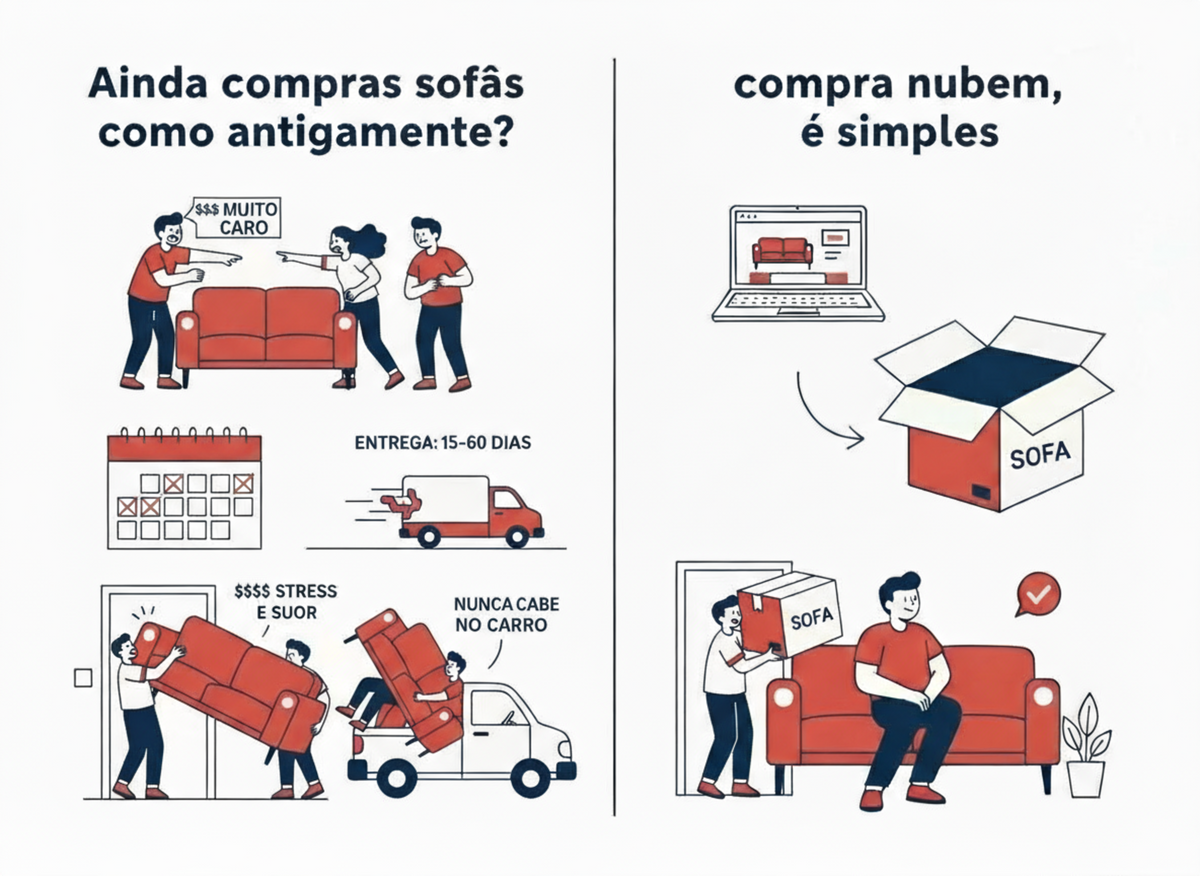 Esquece as entregas demoradas e os sofás impossíveis de mover.